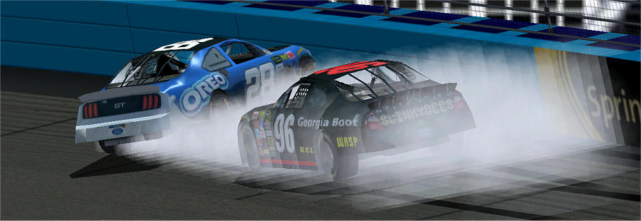Johnny reed Foley was poised to dominate the early season in what looked to be another top-5 finish. Contact with Tim McDonnell would call an end to the story, dropping Foley to a horrifying 40th. Matthew Dominique had a very slow pit stop after problems putting on the right-side tires. Surprisingly, Mark Murphy and the rookie pit crew were flawless, and came out in the lead.